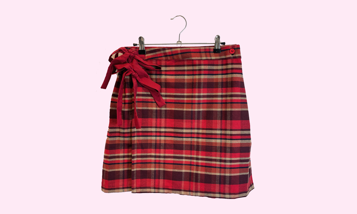 Bonnie Handmade Red Cotton Checked Pleated Wrap Mini Skirt - Size 10 and 12