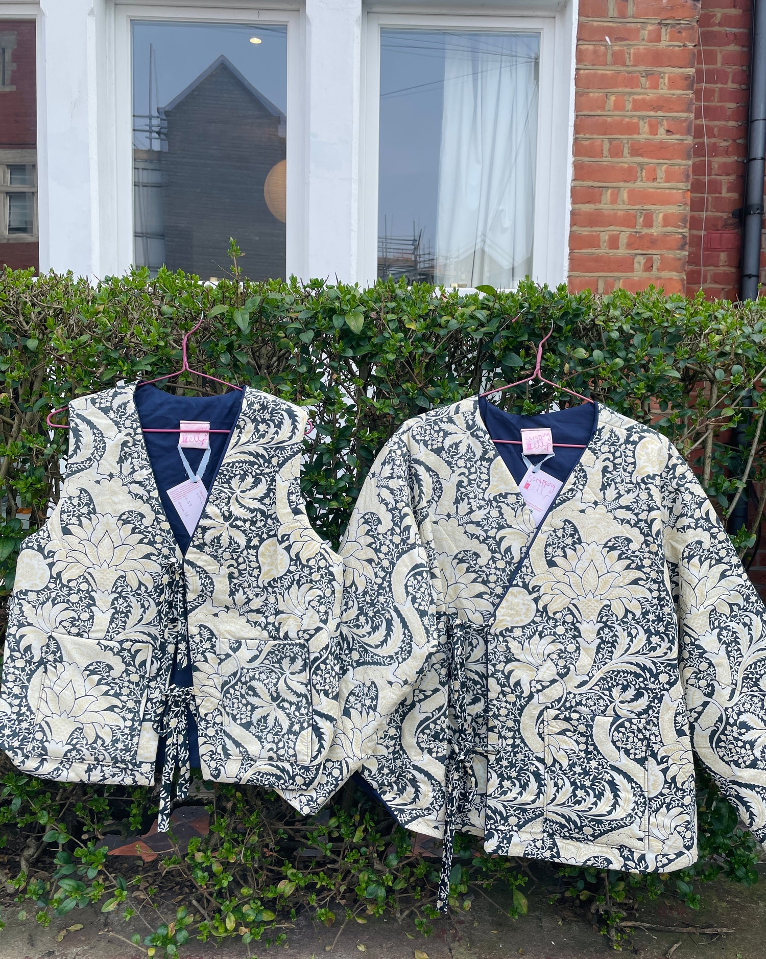 Zoe Handmade Navy Blue and Yellow Floral Wrap Front Quilted Jacket - Up To Size 14
