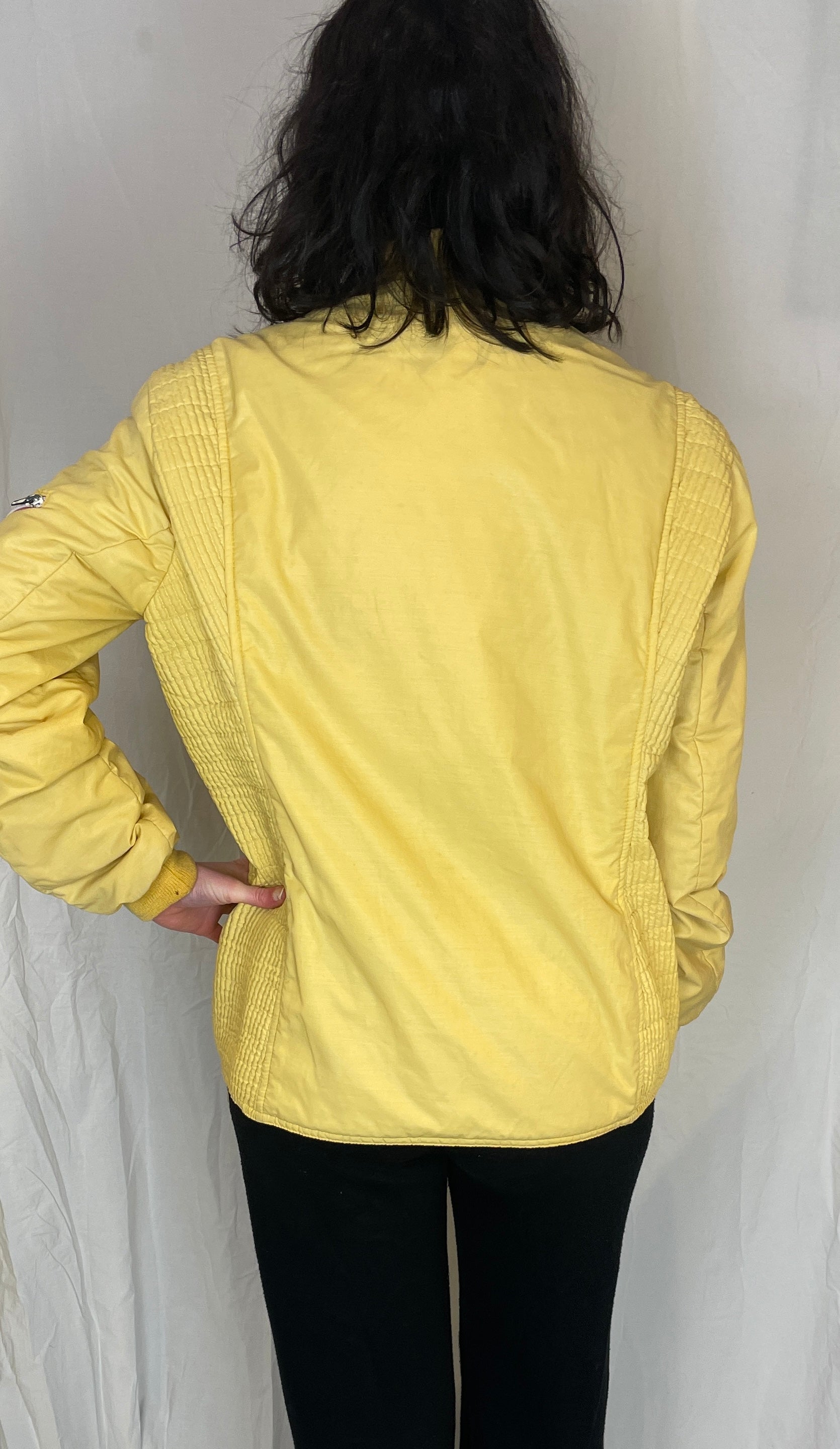 Vintage 80s Pale Yellow Ski Bomber Jacket - Up To Size 12