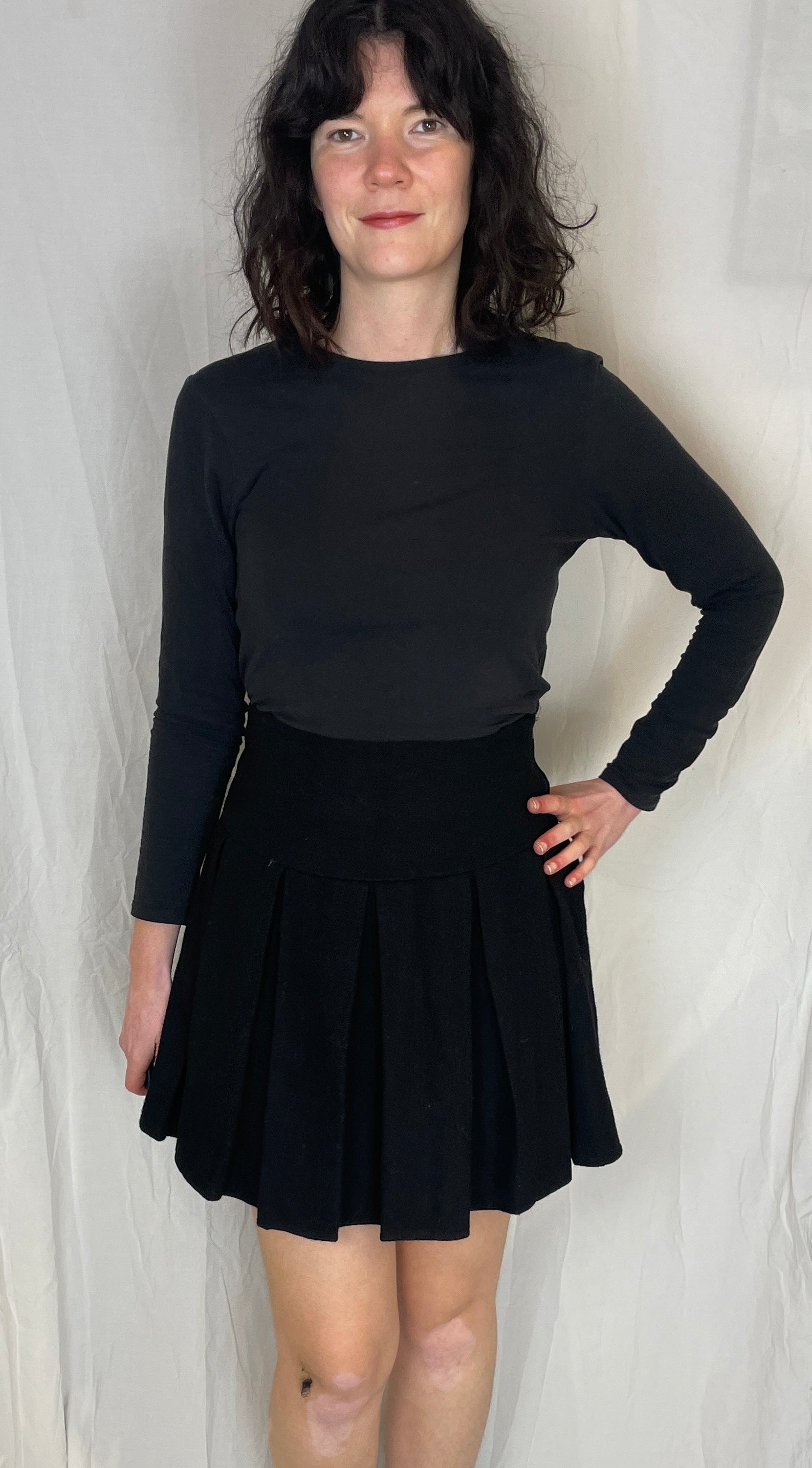 Vintage 90s Black Wool Pleated Mini Skirt - Size 8