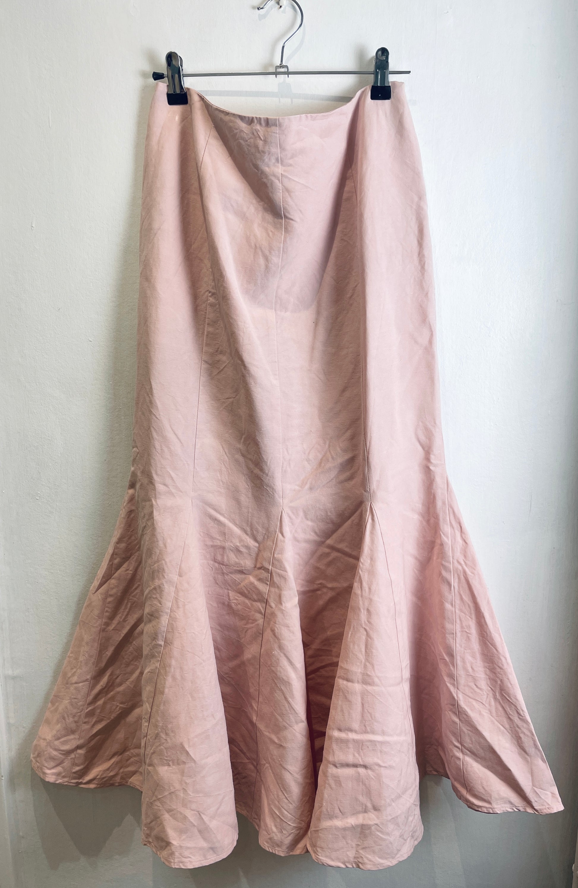 Vintage 90s Pale Pink Silk Blend Mermaid Maxi Skirt - Size 8