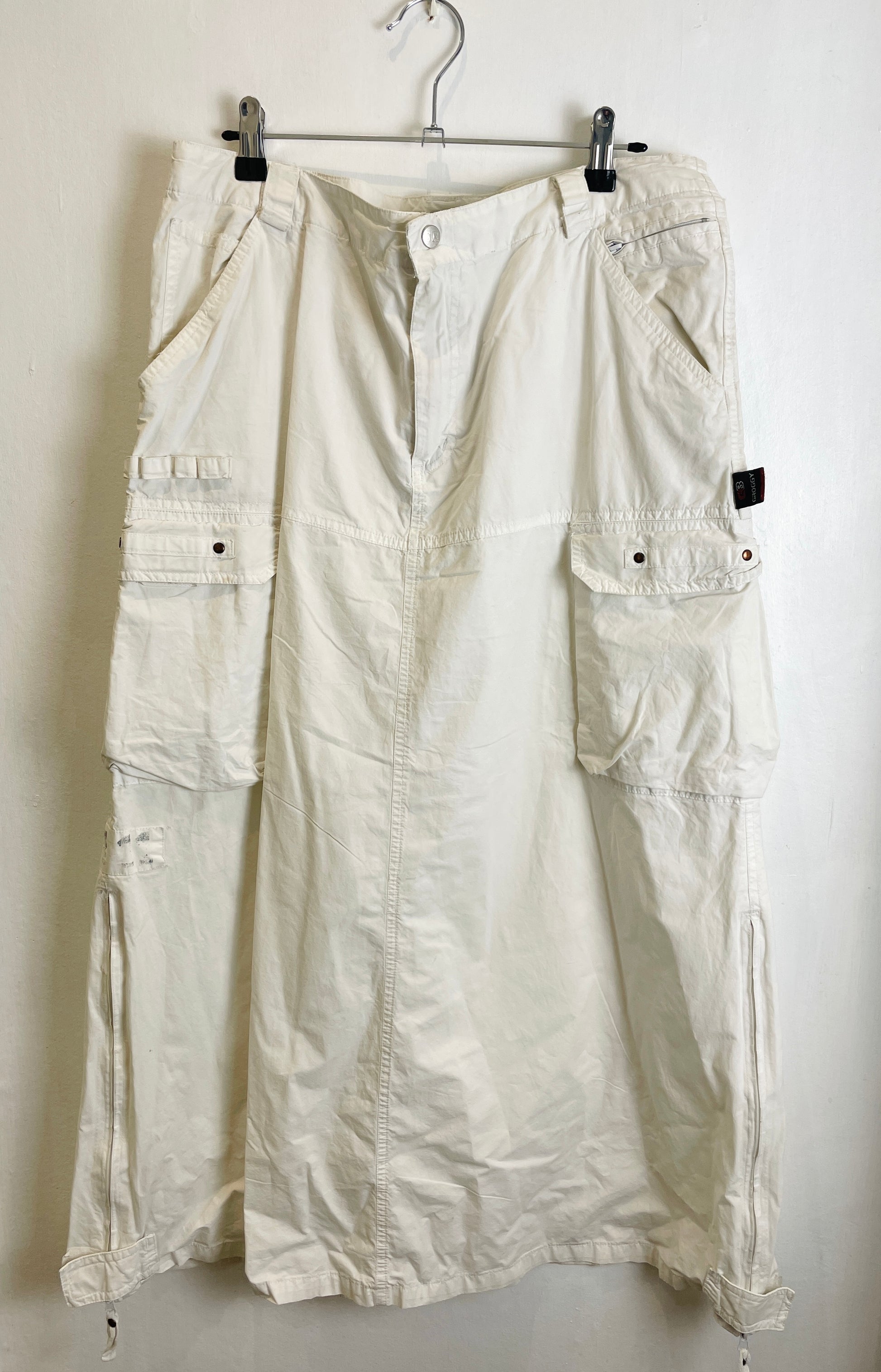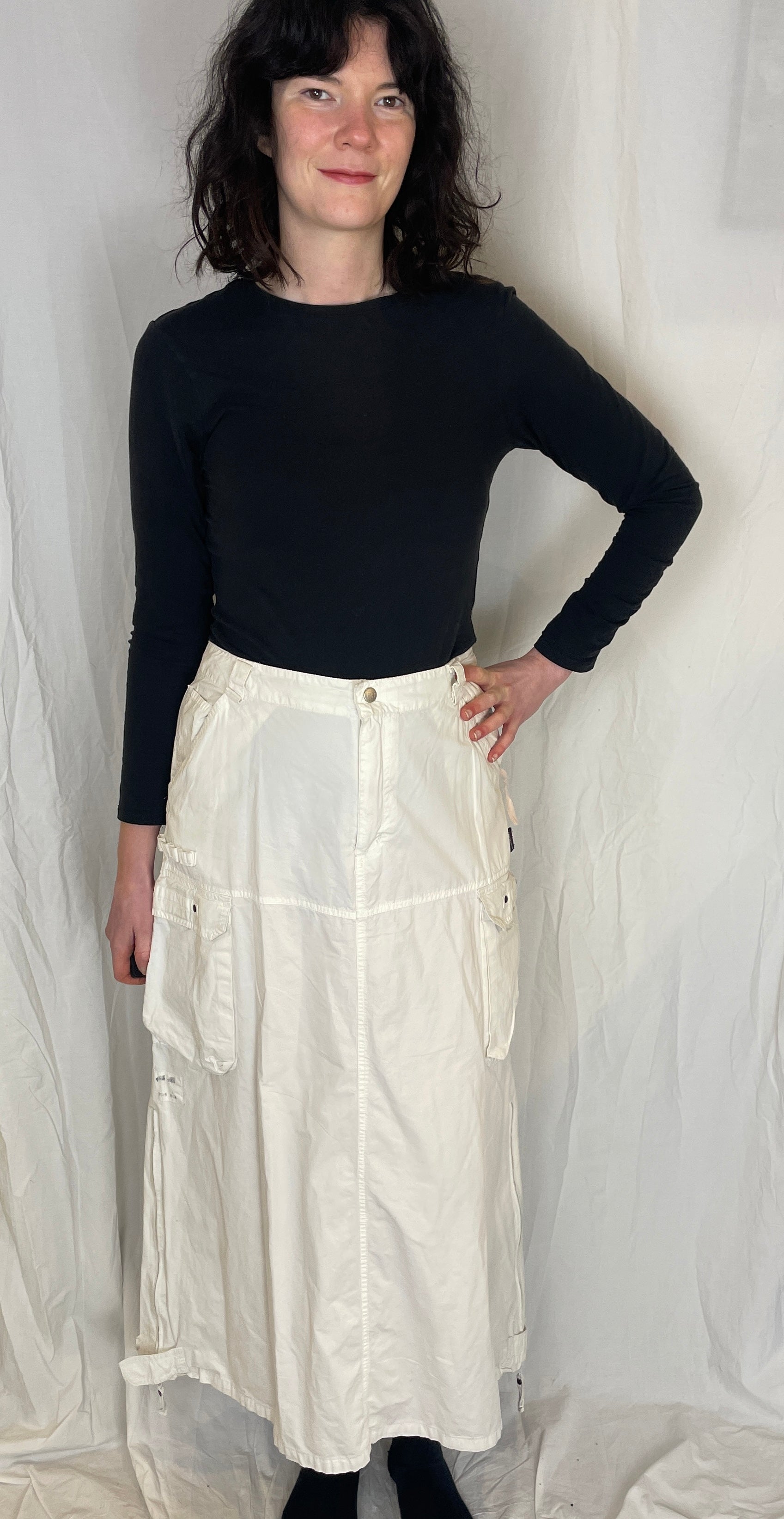 Vintage Y2K White Cotton Cargo Maxi Skirt - Size 14